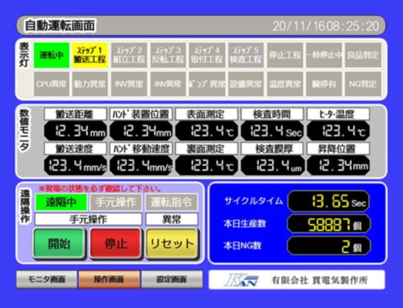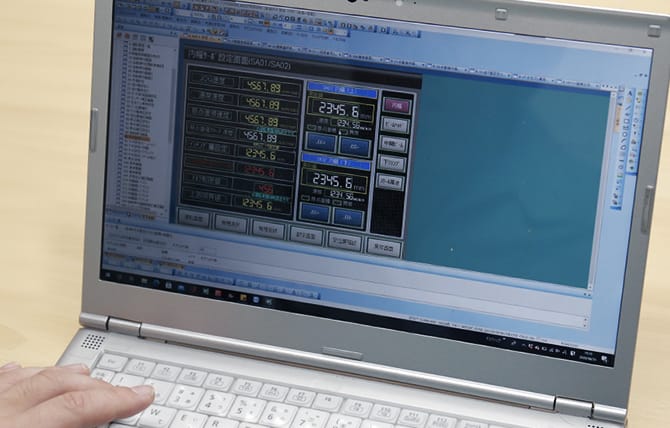 また、大型モニタ-等にもわかりやすく表示できるデザインにも対応しデ-タはCSV管理にも対応し、工場の動きの見える化装置を設計。point